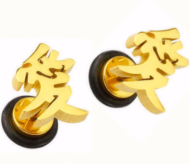 Pair Steel Golden Love Logo Ear Cheater Illusion Fake Plugs 16 Gauge