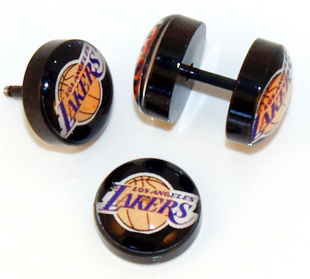 Pair Steel Black Ear Cheater W Laker's Logo Illusion Fake Plugs 16 Gauge