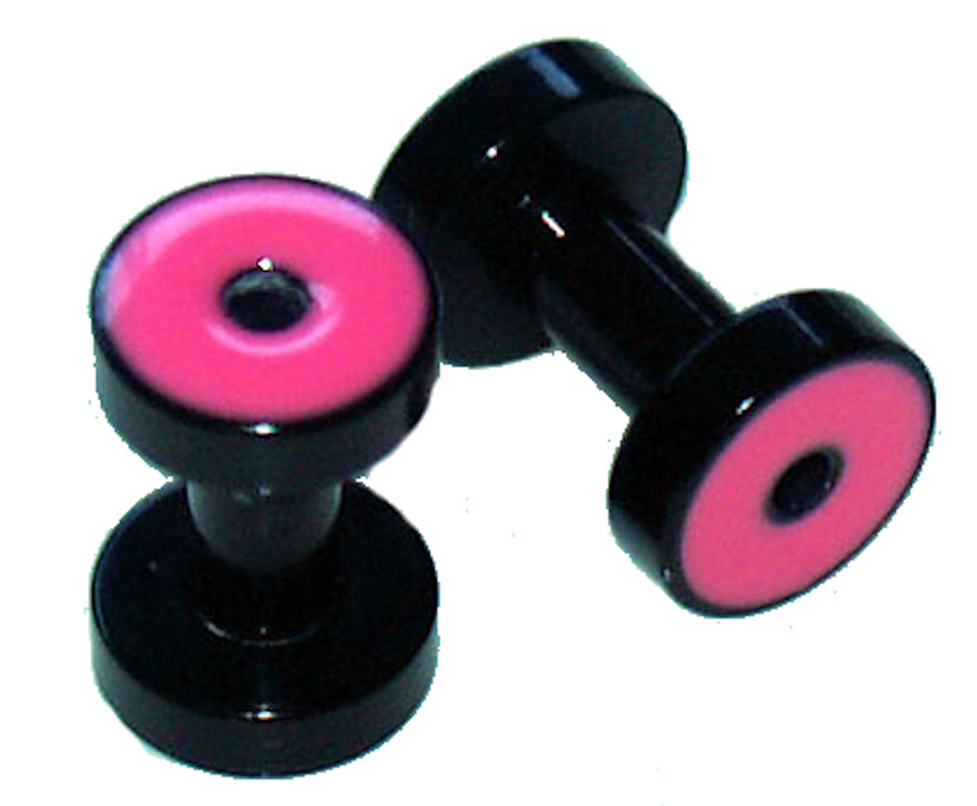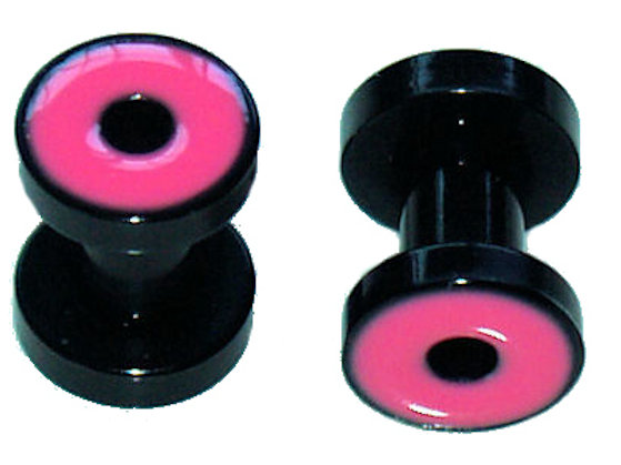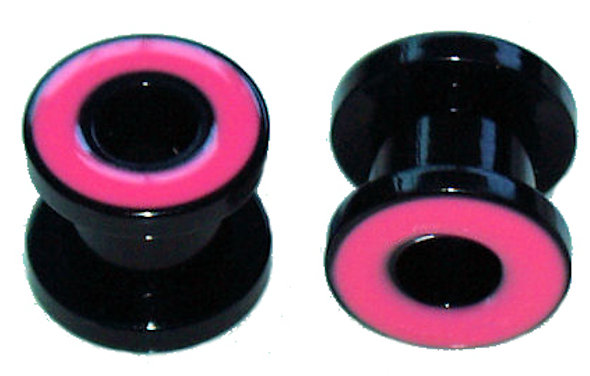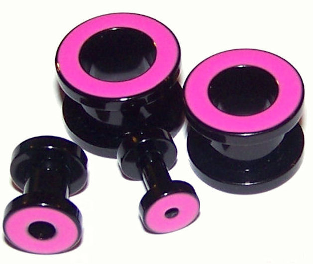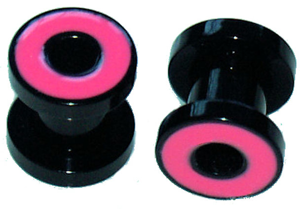Pair Pink Rim Black Acrylic Ear Tunnel Plugs Flesh Screw on