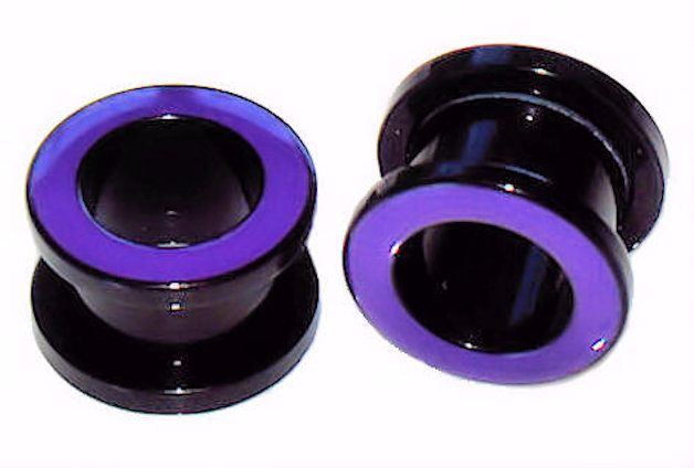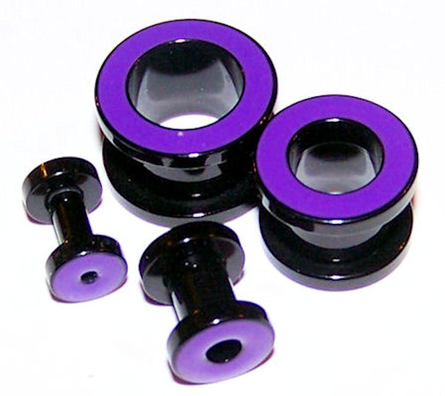 Pair Purple Rim Black Acrylic Ear Tunnel Plugs Flesh Screw on