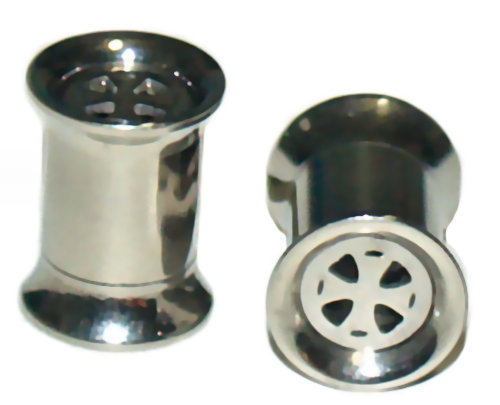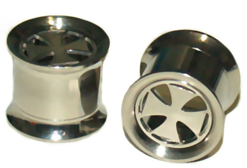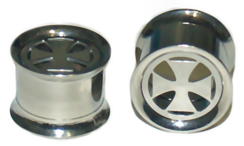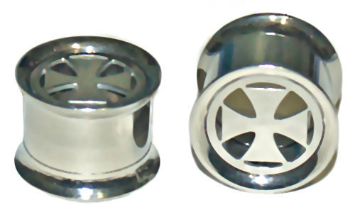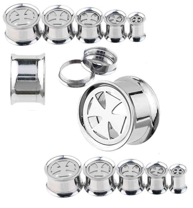 Pair (2 Pieces) Iron Cross Screw On Tunnel Ear Plugs - Surgical Stainless Steel - Easy Screw-On - Choose your Size from: 2g (6mm), 0g (8mm) 00g (10mm), 1/2 (12.7mm) and 9/16(14mm) - ea556