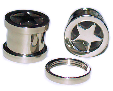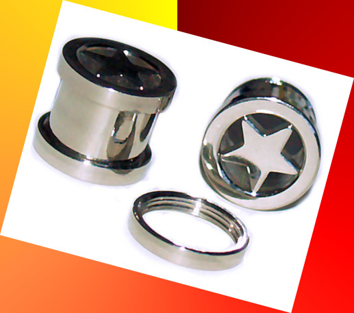 Pair (2 Pieces) Steel Star Saddle Flesh Tunnel Ear Plug Gauges - Highly Polished Stainless Steel- Choose your Size from: 0G (8mm) and 00g (10mm) - msin1034