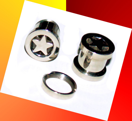 Pair Steel Star Saddle Flesh Ear Tunnel Plugs Gauges