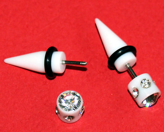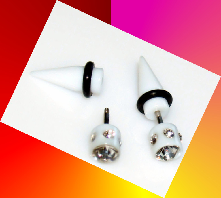 Pair (2 Pieces) Acrylic CZ White Fake Taper Expander Taper Piercing Ear Cheater Plugs - High quality acrylic disc and spike with one o-ring - Big Clear CZ size: 6mm Plus 5 clear cz around - Get the 2g (6mm)look without stretching - Stainless Steel Shaft - Size: 16gauge - Length: 1/4" (6mm) - Spike size: 15mm - msin483