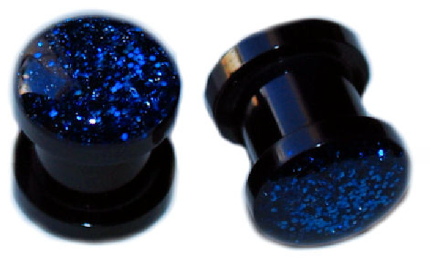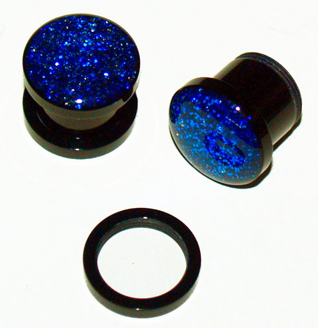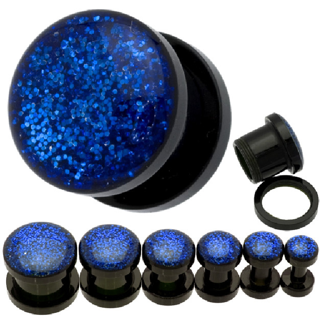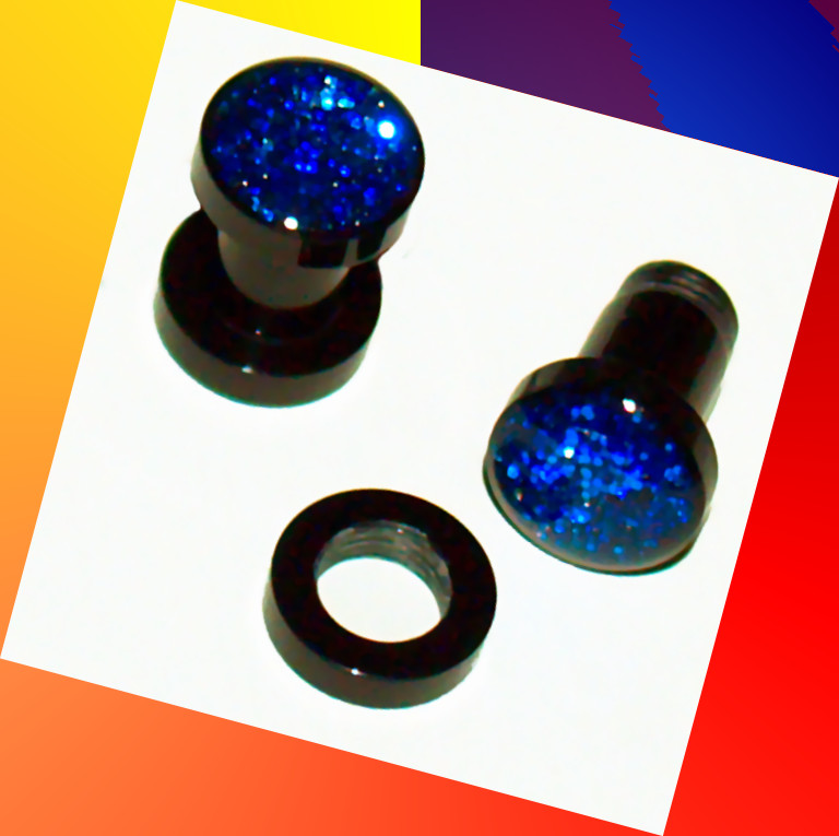 Pair (2 Pcs) of Blue shimmering Dome Saddle Screw Fit Ear Plugs Gauge - Easy Screw-On plugs - High Quality Acrylic- Choose your Size from: 8g (3.2), 6g (4mm), 4G (5mm),2G (6mm), 0G (8mm, and 00g (10mm) - msin2389
