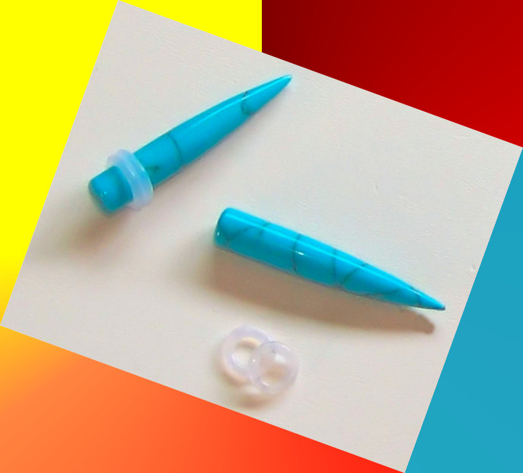 Pair (2 Pcs) Organic Blue Turquoise Stone Straight Ear Taper Expander Ear Gauges Plugs Gauges - Genuine Semi-Precious Stones are all natural and will vary in color and pattern.- High Polished. Smooth Edges. - 2 O-Rings included - Choose your Size from: 2g (6mm), - ea498
