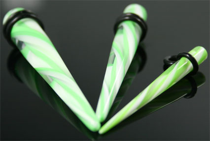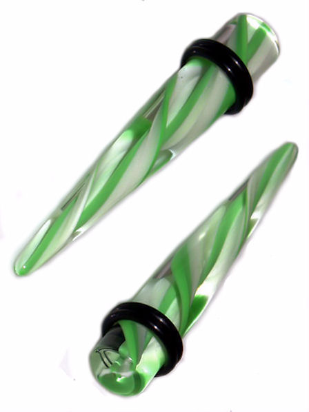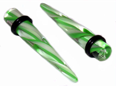 Pair White and Green Striped Acrylic Ear Taper Stretchers Plugs
