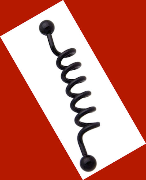 Ball Industrial Spiral Cork Ear Industrial Barbell Piercing Jewelry- Titanium Anodizing on Stainless Steel - Size: 14 Gauges (1.6 mm) - Length: 1&1/2" (38mm) - Ball Size: 5mm -bb138black