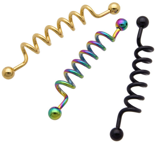 Steel Anodized Ball Black Spiral Cork 14G Ear Industrial Barbell Piercing Jewelry Gauge
