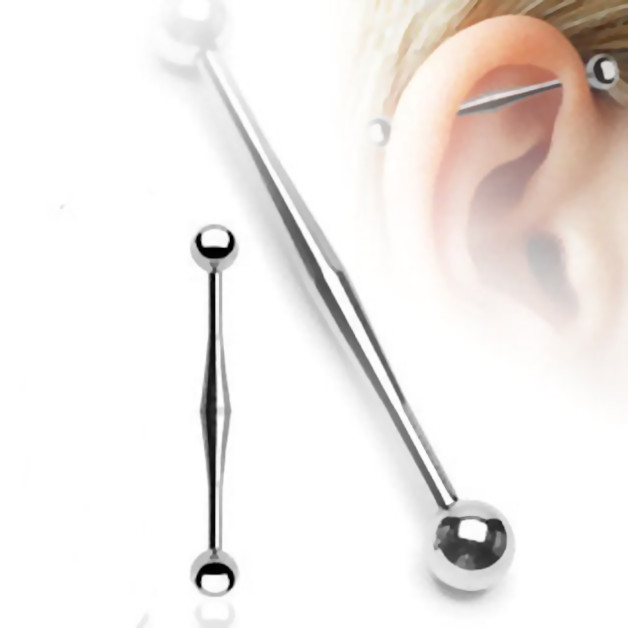 One Steel Bumped Ear Industrial Barbell Earring Piercing Jewelry 14G Gauge