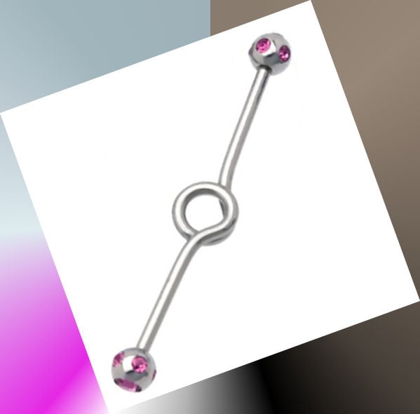 Pink CZ Circle Industrial Ear Industrial Barbell Earring Piercing Jewelry 14 Gauge - Style: Circle - Size: 14 Gauge (1.6 mm) - Length: 1.5" (38mm) - Ball Size: 5mm-cmsin2275pink