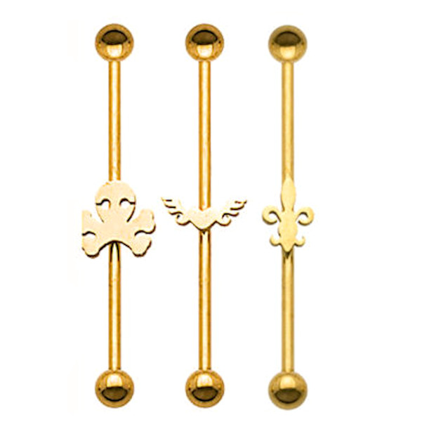 Steel Titanium Anodized Golden 14G Skull Industrial Ear Barbell Gauge