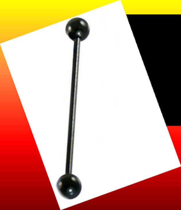 Titanium Anodized Black Titanium Bead Industrial Barbell Ear Plug- Show off our well designed ear barbell with high Quality Titanium Anodizing on Stainless Steel - Size: 14 Gauge (1.6 mm) - - Length: 1&1/2" (38mm) - Ball Size: 5mm -bb048black