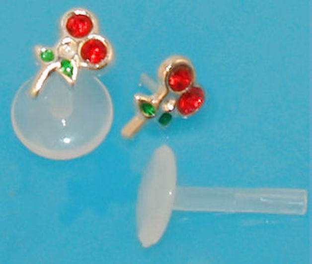 One Push-in Pin Flexible Cherry Lip Ring Labret Stud Piercing Jewelry 16G, 5/16