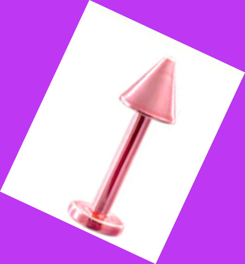 Stainless Steel Anodized Pink Spike Lip Labret Ring Stud Monroe Tragus Chin Piercing Jewelry 16 Gauge - Height: 1.25 cm - Width: 0.40 cm - Size: 16 Gauge (1.2 mm), Length: 5/16 (8 mm)- Cone size: 3mm-jnb158