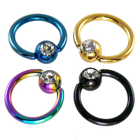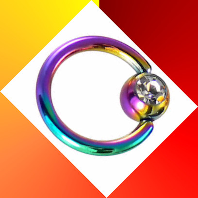 Rainbow Titanium Plated CZ Gem Captive Bead Ring Nose Septum Hoop Earring Nipple Lips - High Quality Anodizing on 316L Stainless Steel - Clear CZ Gem Stone in each ball - Sizes: 14 Gauge (1.6 mm), 3/8 (9.5 mm) - Ball Size: 5mm - cp026