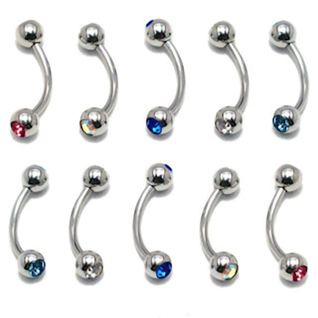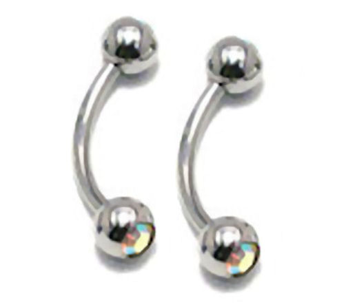 Pair (2 Pieces) Steel Ball Eyebrow Ring / Tragus/Ear Barbell Stud Jewelry with double AB gems. - Externally threaded - 316L Surgical Steel - Size: 16 Gauge (1.2 mm), Length: 3/8" (9.5 mm) - Ball Size 3mm -ey006