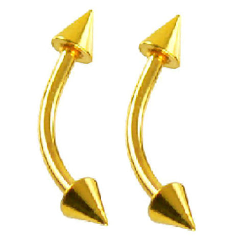Golden Titanium Anodized Spike Eyebrow Ring / Tragus/Ear Barbell Stud Jewelry Piercing 16Gauges, 3/8- High Quality Anodizing on 316L Stainless Steel - Size: 16 gauge (1.2 mm)- length: 3/8" (9.5 mm)-ey009