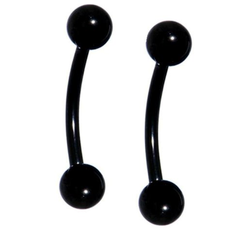 Pair (2 Pieces) Black Line Curve Eyebrow Rings / Tragus/Ear Barbell Stud Jewelry Piercing 14G.-Can also be used like Belly ring, eyebrow and Nipple Ring- High Quality black plating on 316L Surgical Steel - Size: 14 gauge (1.6 mm), Length: 5/8 ( 16mm) - Ball Size: 5mm on both end. ba274