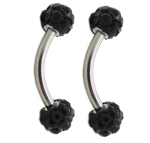 Pair (2 Pieces) Black Crystal Ferido Ball Eyebrow Rings / Tragus/Ear Barbell Stud Jewelry Piercing - Multi-color Swarovski crystals set in ferido pave setting.- Size: 16G gauge (1.2 mm) - Length: 5/16" (8mm) - Ball Size: 4mm -ey036