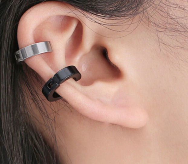 Pair Steel Inlay Blue IP Non Piercing Earring Hoops Clip On Cuff Ear Jewelry