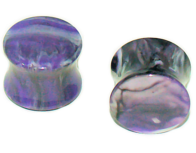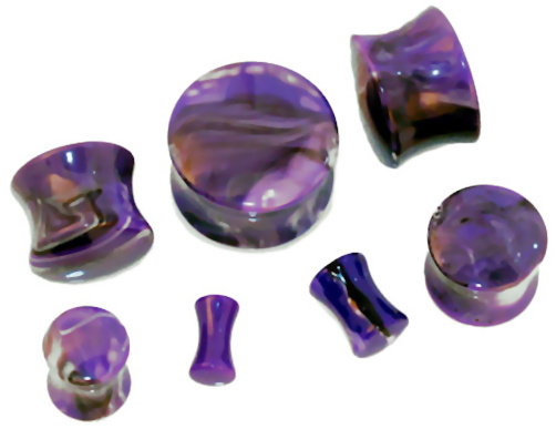 Pair Purple Marble StonePlugs Saddle Ear Stretching Piercing Jewelry Gauge