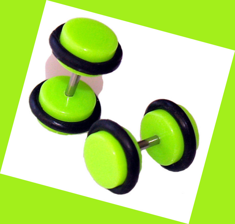 Pair (2 Pieces) Acrylic Green Fake Cheater Ear Illusion Plugs 16G, 7mm - High quality Acrylic - 7mm Acrylic ends with one 0 rings each - 316L Stainless Steel Shaft - Size: 16 gauge - Length: 1/4" (6mm) -msin329