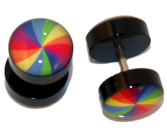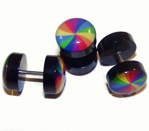 Pair (2 pieces) of UV Rainbow Fake Cheater Illusion EarFaux Plugs 16G - High quality Acrylic - Looks like 10 mm Gauge, Acrylic ends - 316L Stainless Steel Shaft - Size: 16 gauge - Length: 1/4" (6mm) - Get the heavy gauge look without stretching - msin40