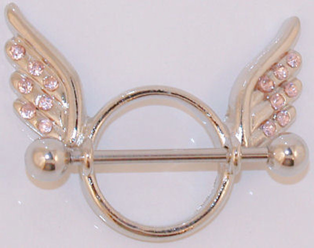 Pink CZ Wing Nipple Ring Shield Barbell Body Piercing Jewelry Bar - 3 CZ Gem Stones on each side of the wing - A total of 6 Gem Stones on each nipple shield! - 316L surgical stainless steel shaft - Measurement: Size: 14 gauge (1.6 mm) barbell, 5/8"(16mm) opening - Gem Colors: Pink - np011pink