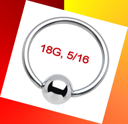 18 Gauge (1 mm) Captive Bead Ring Nose Septum Hoop Earring Nipple Lips- 316L Surgical Steel- Diameters: 5/16" (8 mm),- Ball size: 3mm- cp024