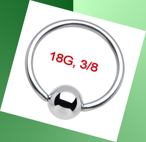 18 Gauge (1 mm) Captive Bead Ring Nose Septum Hoop Earring Nipple Lips- 316L Surgical Steel- Diameters: 3/8" (9.5 mm),- Ball size: 3mm- cp024