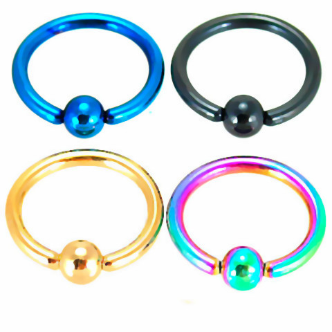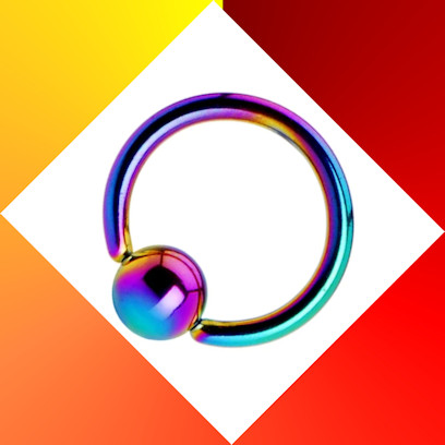 Rainbow Titanium Anodized Micro Captive Bead Ring Nose Septum Hoop Earring Nipple Lips - High Quality anodizing on 316L Stainless Steel - Size: 16 gauge (1.2 mm), Diameter 3/8' (9.5 mm), Ball Size 4mm-cp011