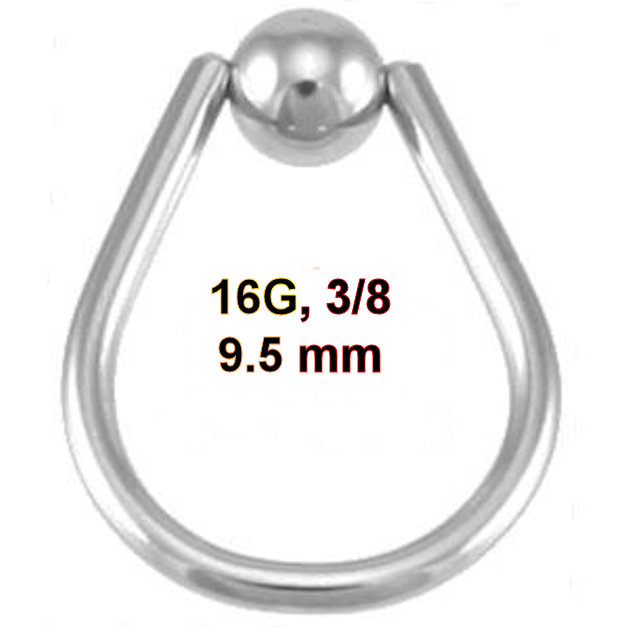 Teardrop Captive Bead Ring Nose Septum Hoop Earring Nipple Lips - 100% Stainless Steel - Size: - 16 gauge (1.2 mm) - Diameter: 3/8" (9.5 mm) - (4mm ball) - cp022