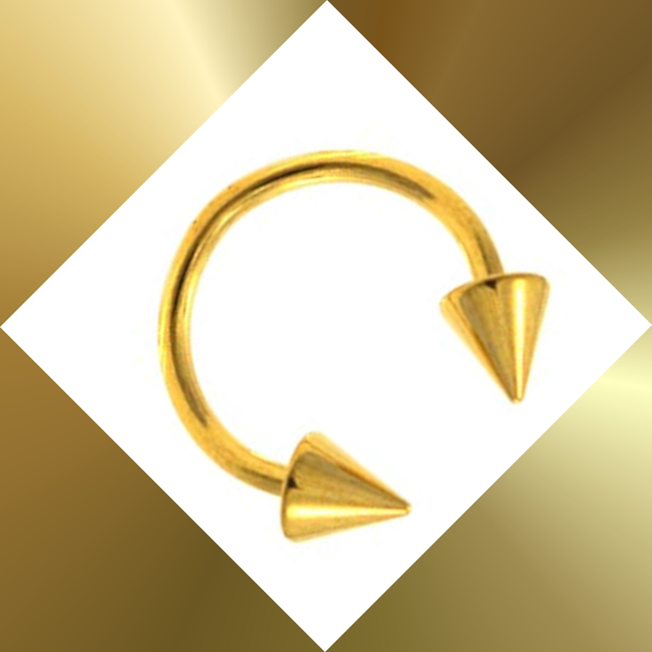 Titanium Anodized Spike Horseshoe Circular Barbell Ring Septum Tragus Lip Piercing - High Quality Anodizing on 316L stainless steel - Color: Gold - Size: 16 gauge (1.2 mm)- Length: 7/16" (11.2 mm)- Cone size: 3mm - Externally Threaded -hs016