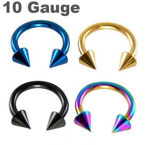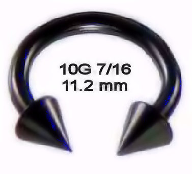 Black Titanium Spike Horseshoe Circular Barbell Ring For Nose, lip Ear Piercing Jewelry 10 Gauges - High Quality Anodizing on 316L Stainless Steel - Internally Threaded - Colors:Black - Size: 10 gauge (2.5 mm)- Diameter: 7/16" (11.2 mm)- Spike Size: 6mm -bte10g