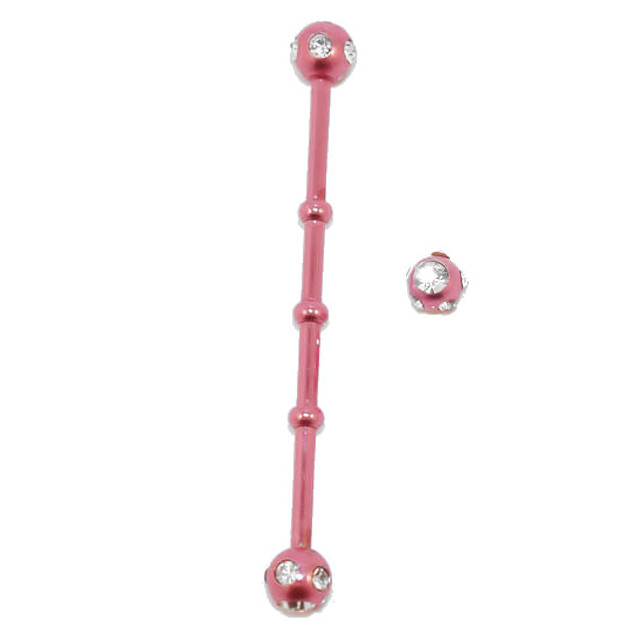 Pink Neon Titanium Bamboo Industrial Barbell Ear Plug- Show off our well designed ear barbell with high Quality Titanium Anodizing on Stainless Steel - Size: 14 Gauge (1.6 mm) - Length: 1&1/2" (38mm) - Ball Size: 5mm -Cz color: Clear msin2192