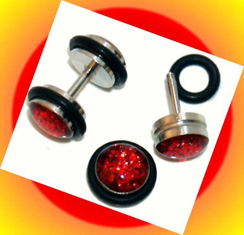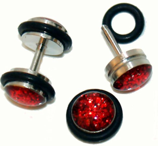 Pair Steel Red Dome Ear Cheater Illusion Fake Plugs 16 Gauge, 0G