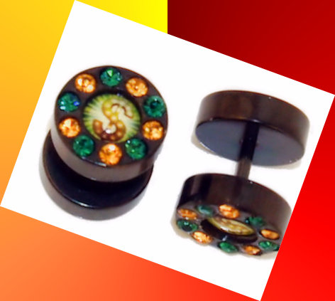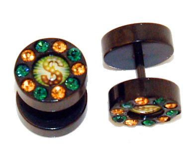 Pair (2 Pieces) Anodizing Stainless Steel Fake Illusion Ear Fake Plugs Dollar Sign Print 00G with CZ - Made of anodizing Steel - No Ear Stretching needed. look like real 00G- Print on one side only - 00 Gauge Acrylic ends - 316L Steel Shaft - Shaft Size: 16 gauge - Length: 1/4" (6mm).-msin2335