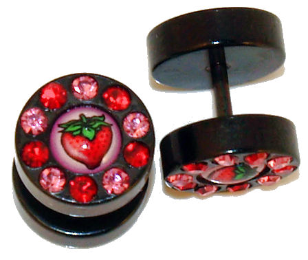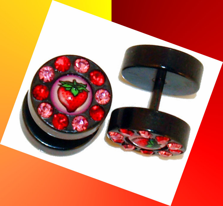 Pair (2 Pieces) Steel Strawberry Ear Cheater With CZ Illusion Fake Plugs 16 Gauge - Made of anodizing Steel - No Ear Stretching needed. look like real 00G- Print on one side only - 00 Gauge Acrylic ends - 316L Steel Shaft - Shaft Size: 16 gauge - Length: 1/4" (6mm). msin2336