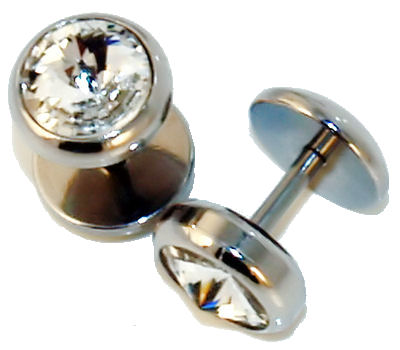 Pair (2 Pieces) Steel Ear Cheater With Clear Gem Illusion Fake Plugs 16 Gauge - Stainless Steel - Looks like 0 gauge (8mm) - Shaft Size: 16 gauge - Shaft Length: 1/4" (6mm)-ea238-msin2280