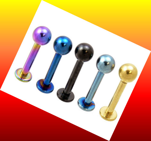 4mm Ball Rainbow Titanium Ball Labret Lip Labret Ring 14 Gauge (1.6 mm) - Length: 3/8" (9.5 mm) - Ball Size: 4 mm-- High Quality anodizing on 316L stainless steel - la003