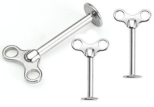 16G, 3/8 Steel Cut Winding Key Top Lip Ring Labret Stud Monroe Tragus Piercing Jewelry