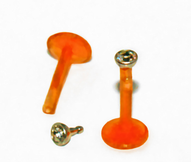 Orange Bio Flex Clear CZ Lip Labret Ring Stud Monroe Tragus Earring Chin Piercing Jewelry Labret Monroe, 16 Gauges (1.2mm), 5/16 ( 8mm) - The Stone is Clear - Push-in pin. No need to twist.Flexible, very comfortable to wear- Size: 16G - Length: 5/16" - msin2355