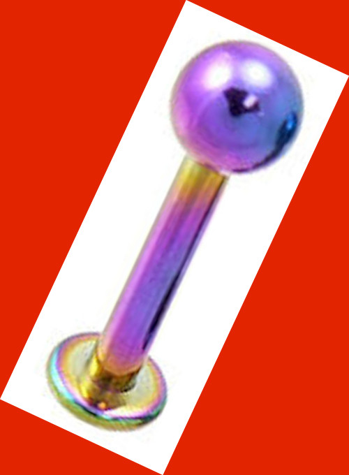 4mm Ball Rainbow Titanium Ball Labret Lip Ring 14 Gauge - High Quality anodizing on 316L stainless steel - Size: 14 Gauge (1.6 mm)- Length: 3/8" (9.5 mm) - Ball Size: 4 mm- la003