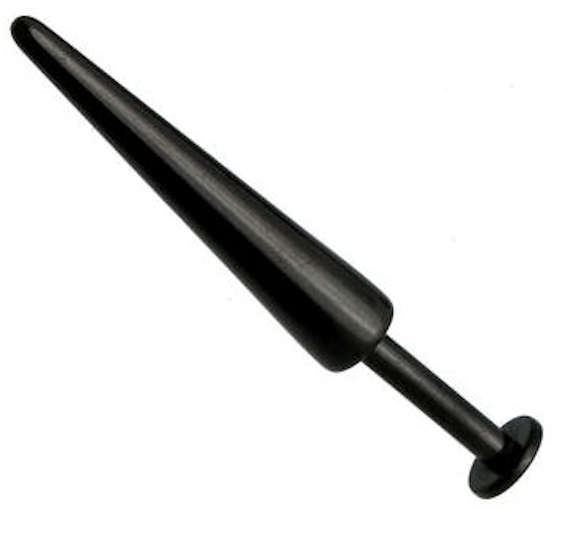 Black Titanium Long Cone Spike Lip Labret Ring Stud Monroe Tragus Chin Piercing Jewelry 14 Gauges - High Quality Black titanium anodizing on stainless steel - Externally threaded - Size: 14 gauge (1.6mm) - Shaft Length: 3/8" (9.5 mm) - Total Length: 28mm -la032