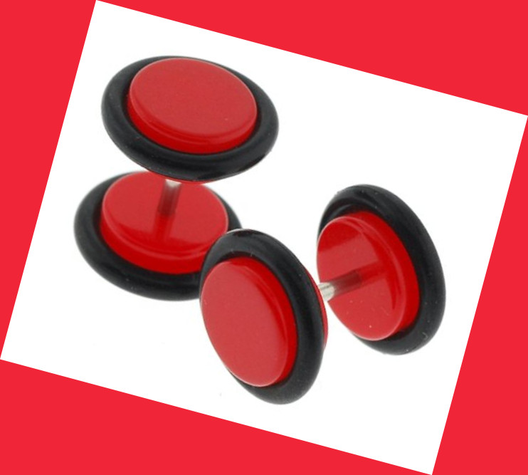 Pair (2 Pieces) Red Cheater Ear Plugs Illusion Fake 16 Gauges - Look like OG-High quality Acrylic - 8mm Gauge Acrylic ends with one 0 rings each - 316L Stainless Steel Shaft - Size: 16 gauge - Length: 1/4" (6mm).-ea382red