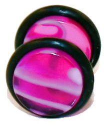 Pair (2 Pcs) Acrylic Pink Ear Cheater Illusion Fake Plugs Look like 0G - Looks like a real 0 Gauges Plugs; 0 Gauge Acrylic ends - 316L Steel Shaft - Shaft Size: 16 gauge - Length: 1/4" (6mm) - msin2299
