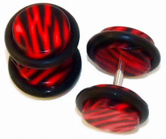 Pair 16G Red Black Flakes Fake Cheater Ear Illusion Plugs 0 Gauges