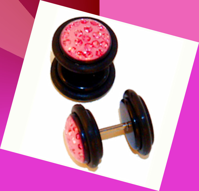 Pair (2 Pieces) Acrylic Pink Stone Fake Cheater Ear Illusion Plugs Jewelry - High quality Acrylic - Two O rings- 10mm Gauge Acrylic ends - 316L Stainless Steel Shaft - Size: 16 gauge - Length: 1/4" (6mm) - Looks like a large 00 Gauges without the need of stretching you ears- msin2175