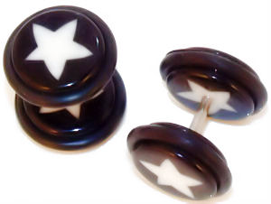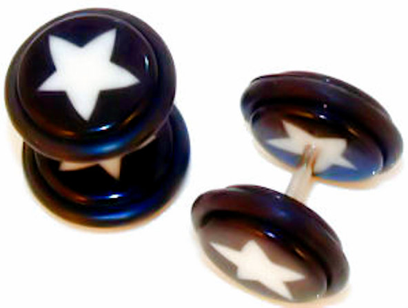 Pair (2 Pcs) Acrylic Black and White Star Fake Plugs 00g- High quality Acrylic - Two O Rings- 316L Stainless Steel Shaft - Size: 16 gauge - Length: 1/4" (6mm) - Get the heavy gauge look without stretching - msin2104